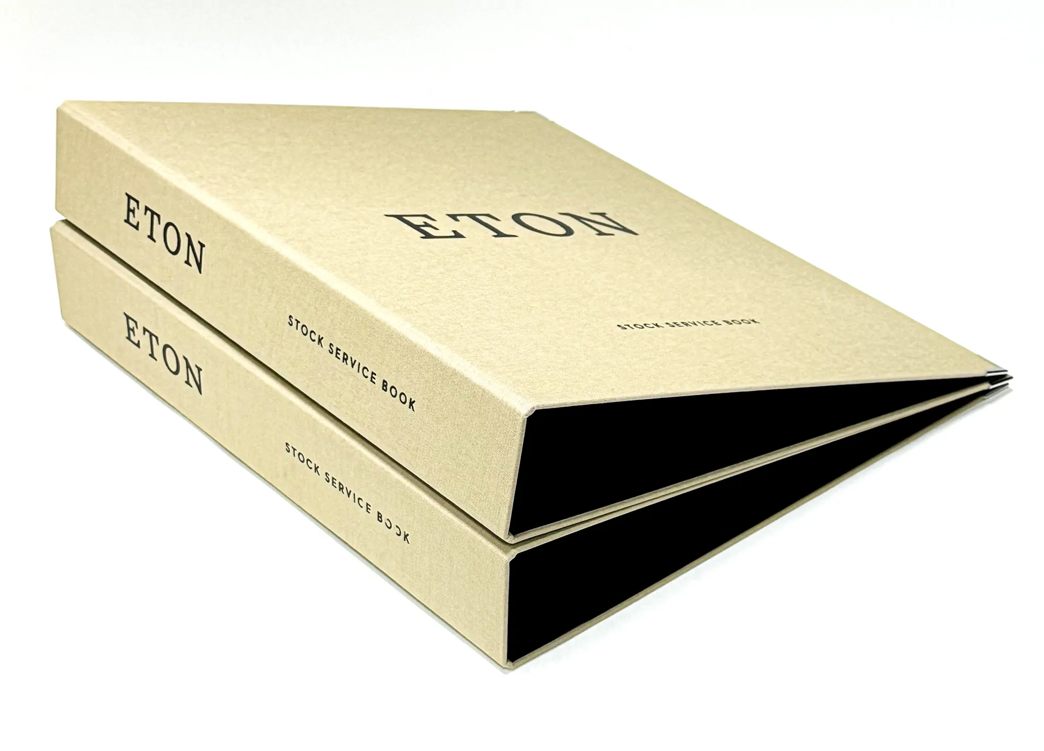 Dvě velmi neobvyklé kolekce vzorků pro pánskou značku Eton byly výzvou. Museli jsme se vypořádat nejen s náročnými detaily, ale také s tisíci vzorků v kombinaci s krátkou dodací lhůtou. Použili jsme všechny naše oblíbené techniky - látku, sítotisk, ražbu a kování. Skvělý úkol!
