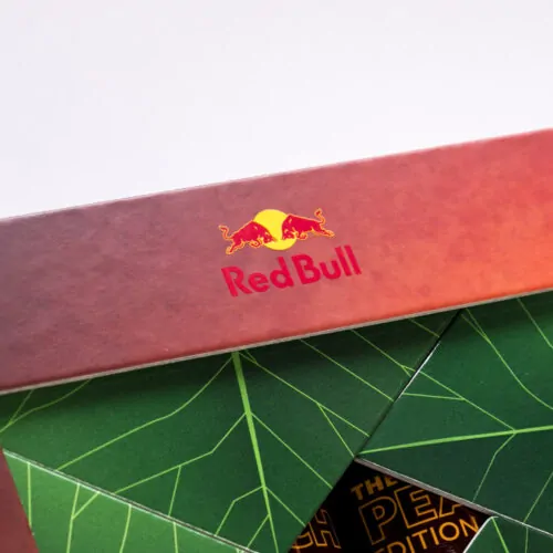 Společnost Red Bull nás požádala, zda bychom mohli vyrobit krabici, kterou by člověk, který ji otevře, musel nejprve vyřešit hádanku. Nakonec jsme vyvinuli starou "Diamantovou hádanku" a navrhli zámek, který bránil vytažení obalu z krabice. Jakmile se vám podařilo diamant správně otočit, krabička se otevře a vy můžete vyjmout její obsah. V tomto případě byla obsahem nová příchuť Red Bull Peach edition, která byla umístěna v upravené kartonové krabici obsahující čtyři plechovky.