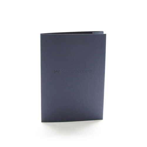 Svazek smluv a složka pro příjem žádostí společnosti Husman Hagberg. Potaženo barevným designovým papírem s vyraženým logem ve fólii.