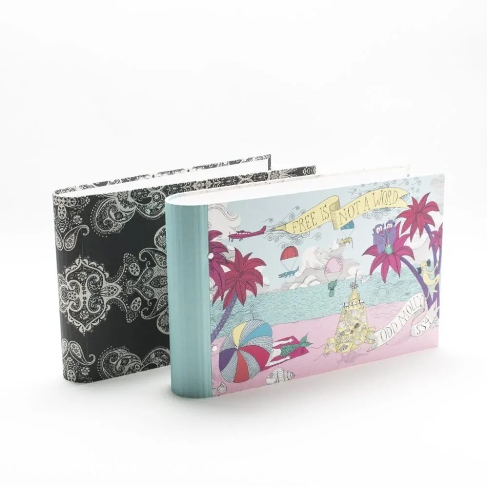 Vnější materiál: tkanina s ofsetovým potiskem. Zaoblený hřbet Formát: A4 na šířku