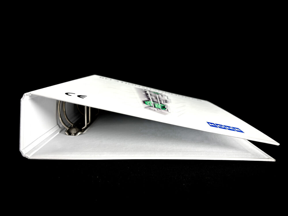 Pro výtahářskou společnost KONE jsme vyrobili kroužkový pořadač pro výkresy vztahů.