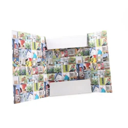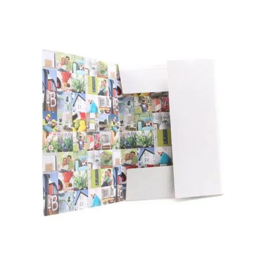 Offset printing inside, positive blind embossing outsidePunching of flaps and mounted lanyard