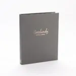 For the real estate agent Norrlandsmäklarna, we have produced a contract binder covered in structured design paper both inside and out. The logo is foil stamped with copper foil on the front and back.