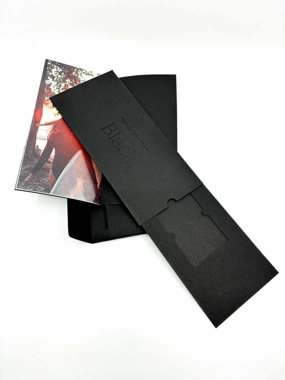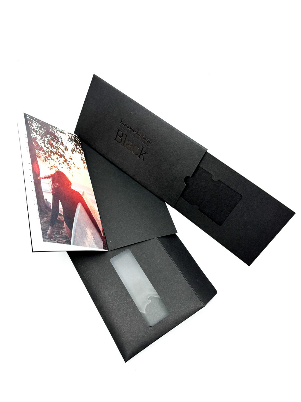 Customised envelope containing a capsule/cassette with an insert that holds a bank card.