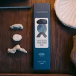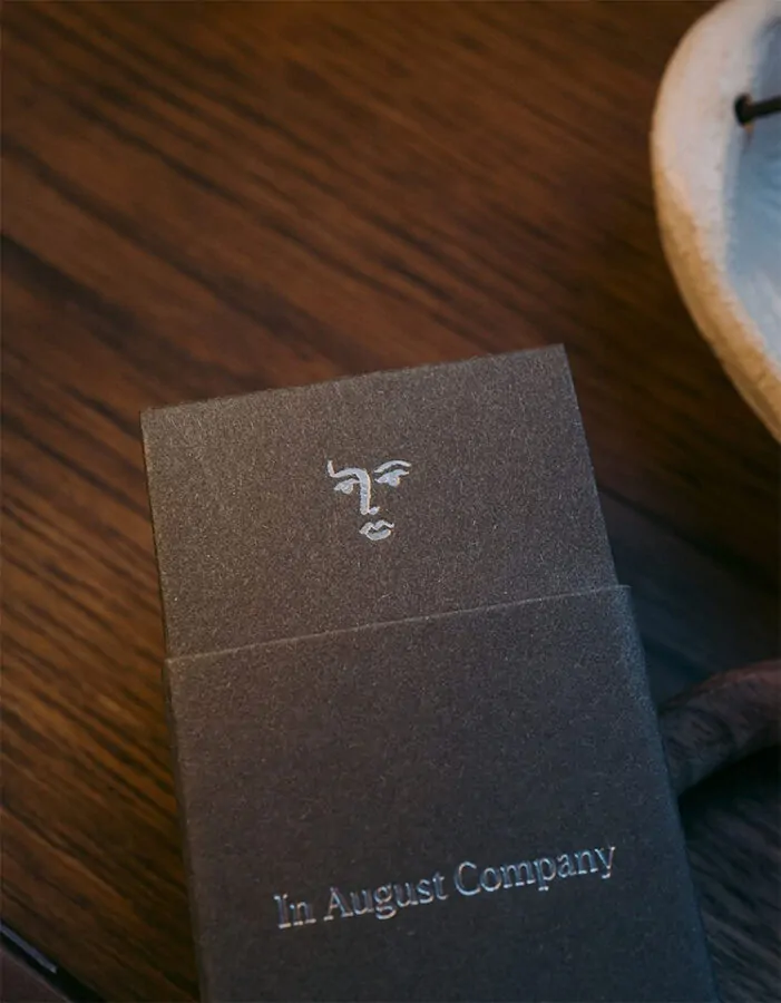 Folding box with interior and sleeve in coloured art paper. The sleeve is foiled in silver and also has a label with four-colour printing.