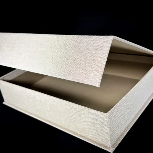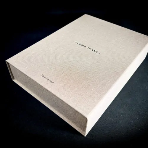 For the Marbella based estate agent Norma Frank we have made this magnet sealing estate agent box, covered in fabric with a soberly embossed logo