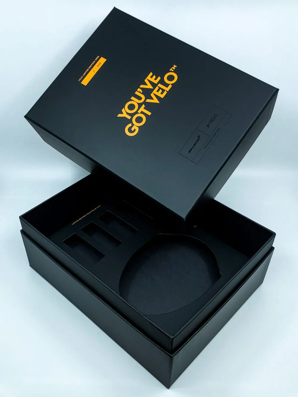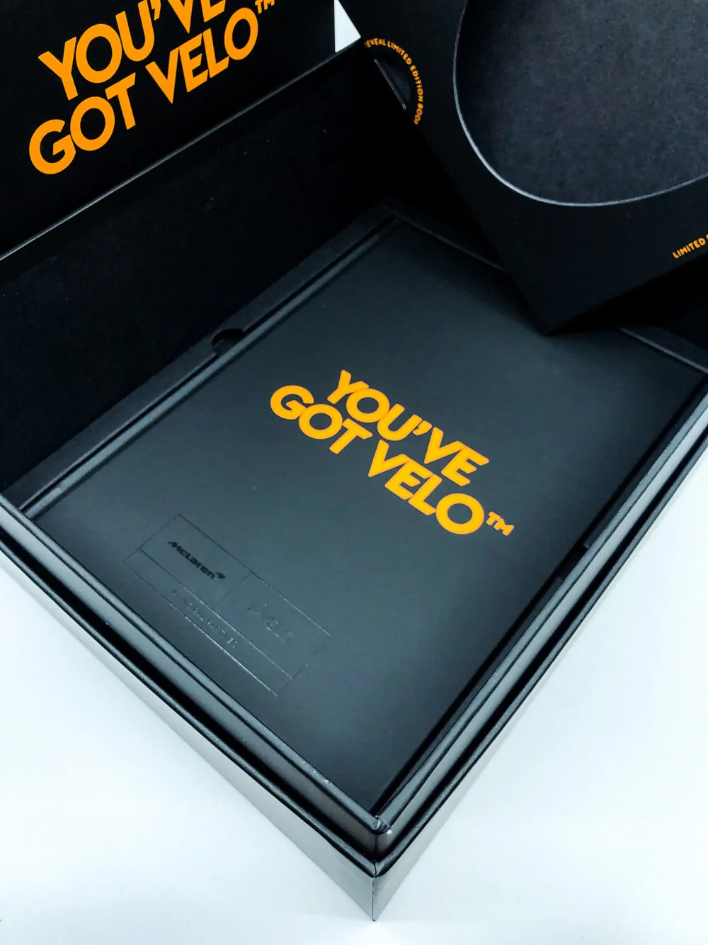 Neckbox with interior and book for the McLaren x Velo campaign