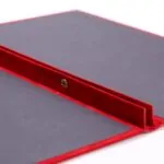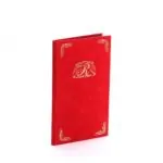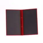 Red flock/velvet exteriorFoiled logo and layoutBack seams with book screws