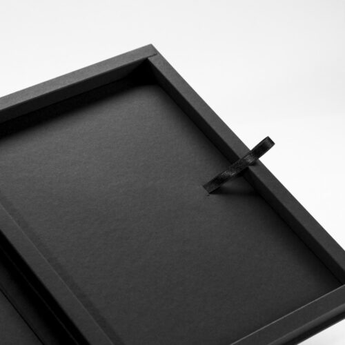 För fastighetsmäklaren och bostadsutvecklaren Avenue har vi tillverkat en avtalsbox i svart strukturpapper. Boxen är tillverkad av svart designkartong med dolda magneter och lyftband. Logotyp och texter foliepräglade med vit folie.