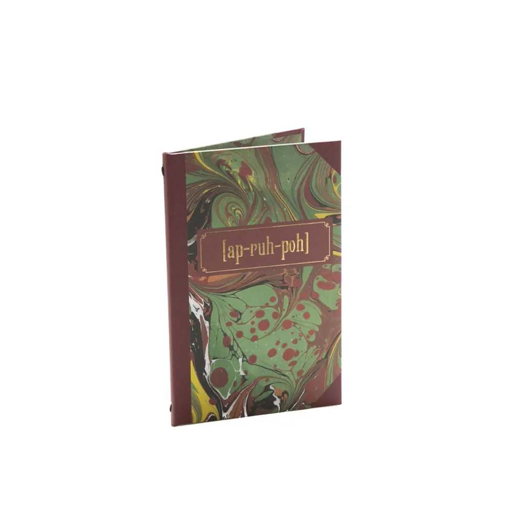 Klädd utvändigt och invändigt i offsettryckt strukturpapper med foliepräglad logoKlotförstärkt rygg och franska hörn samt ryggsnodd