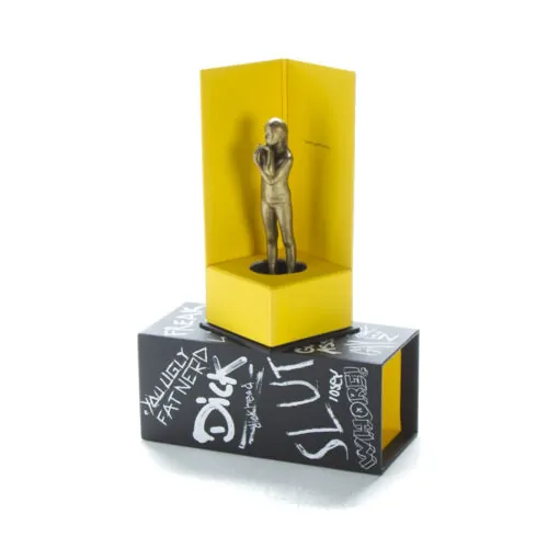 Tryckta och laminerade överdragInredeslösning för att fixera statyett i ställetDisplayytor bakom statyett