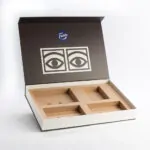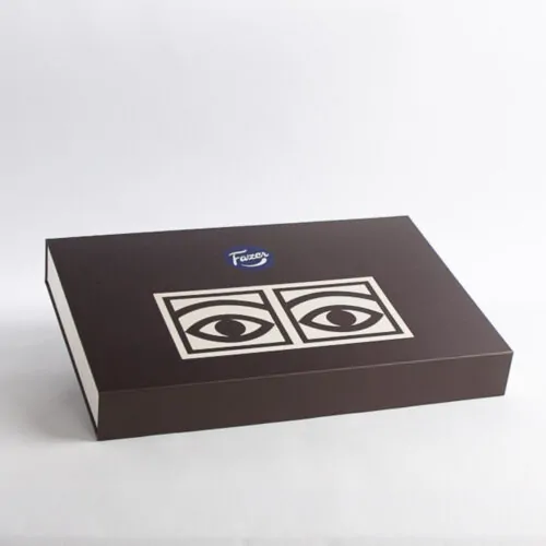 För Fazer har vi fått producera en presentationslåda. Lådan är i sin helhet klädd med ett offsettryckt laminerat överdrag. Det anpassade inredet är tillverkat i en brun miniwell. Låsklaff med dolda magneter.