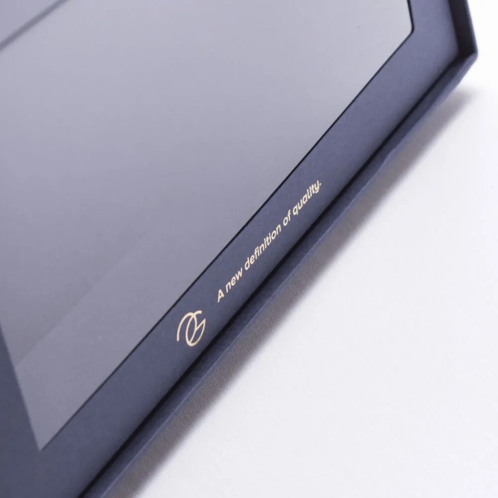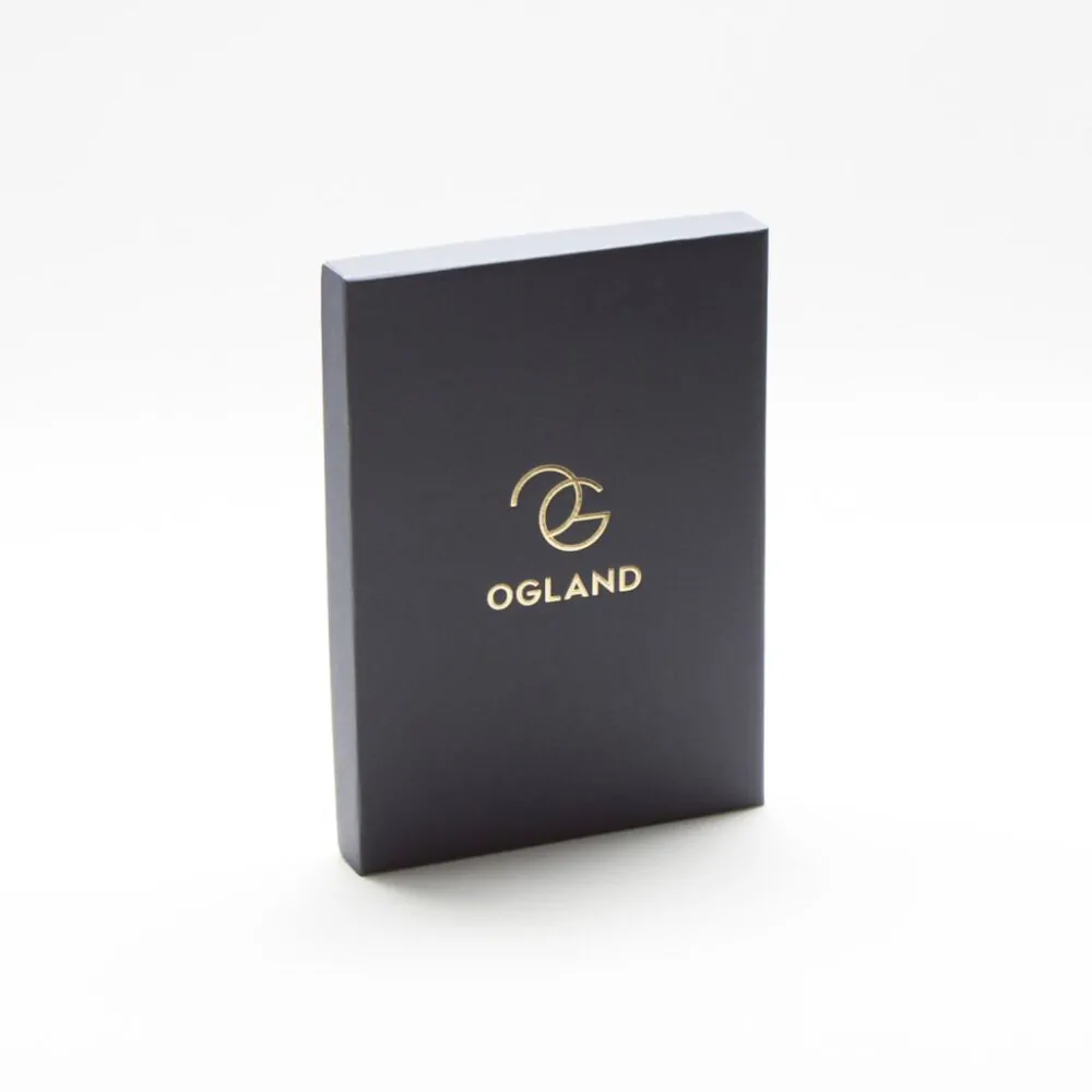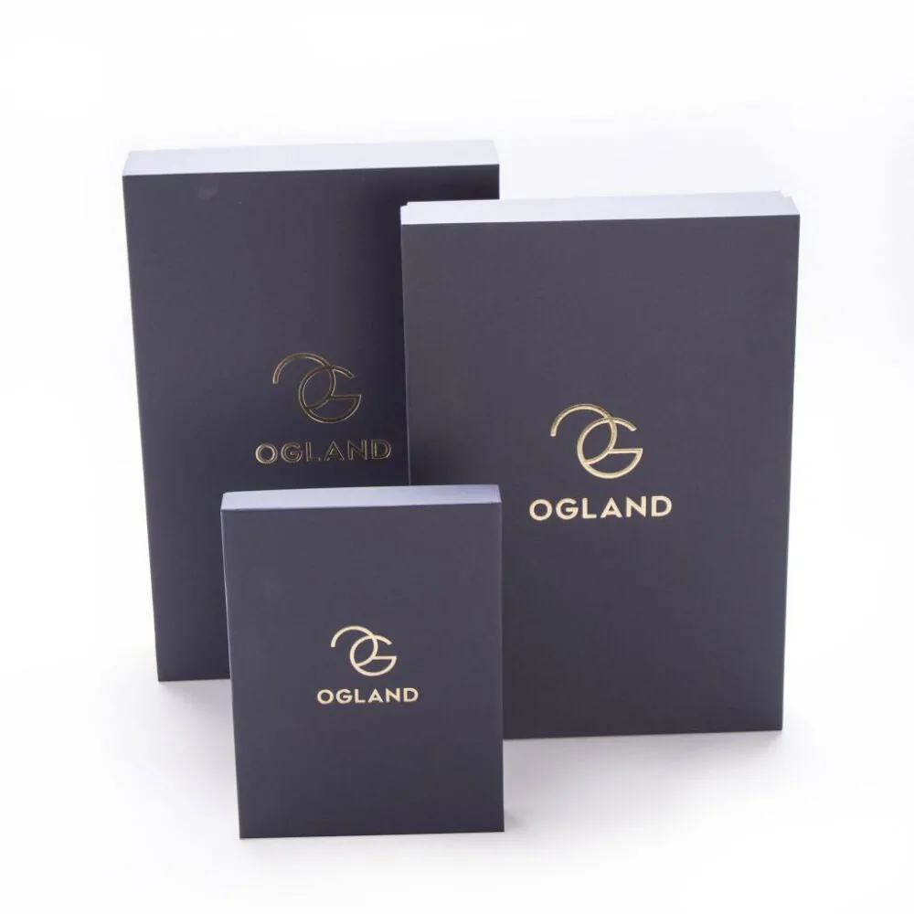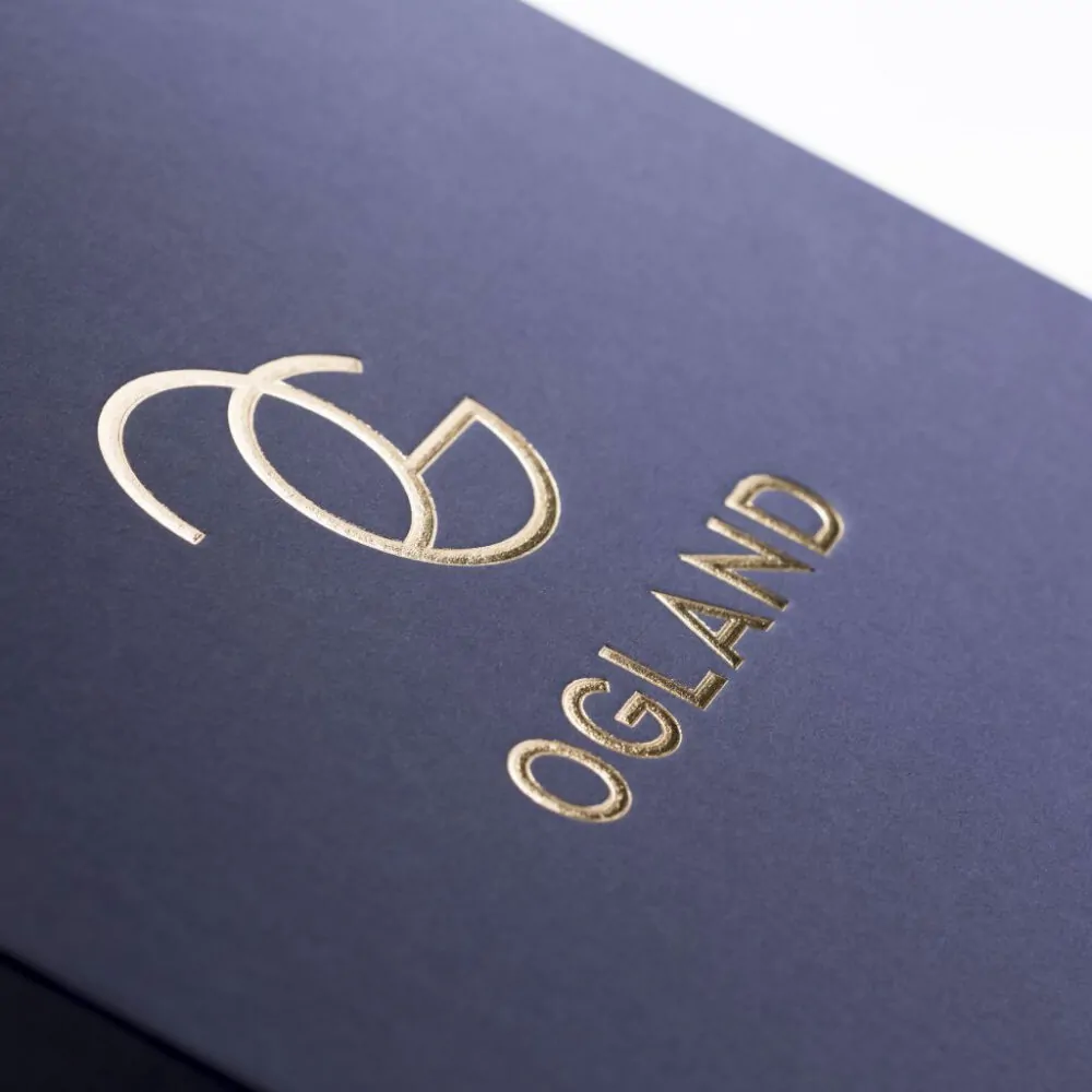För Oglands ekologiska sängkläder har vi tillverkat en serie med förpackningar, där produkten ska ligga skyddad samtidigt som man kan se den när man öppnar locket. Klädd i obestruket infärgat papper med positivt folie präglad logo.
